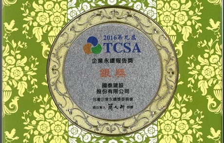 CSR報告書榮獲財團法人台灣永續能源研究基金會TCSA台灣企業永續報告獎銀獎