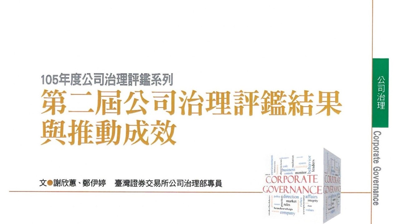 本公司榮獲臺灣證券交易所「第二屆公司治理評鑑」前20%名單